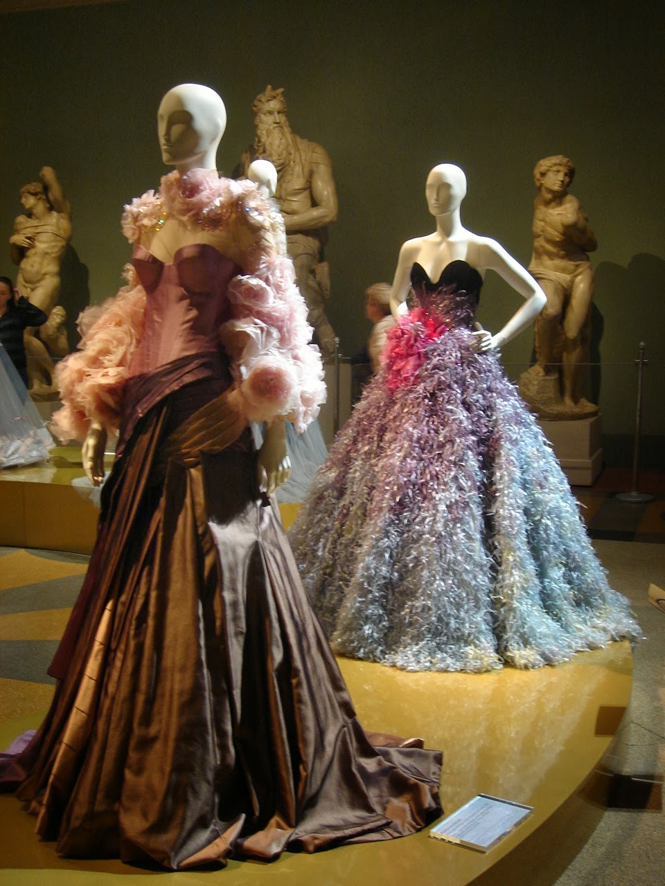 Выставка Валентина Юдашкина "Валентин Юдашкин. Мода в пространстве искусства" в музее им. А. С. Пушкина (до 15.12.13 г.) показалась мне довольно скромно организованной – на различных подиумах стояли манекены, к каждому была табличка с надписью о платье. Некоторые манекены вращались, затрудняя фотографирование. В одном из залов было настолько темно, что разглядеть платья не было никакой возможности, не говоря уже о фото (вспышка запрещена), и в памяти об этих платьях не осталось совсем ничего(((. Лишь в одном зале был экран с показами модельера в режиме non-stop, что оживляло экспозицию.